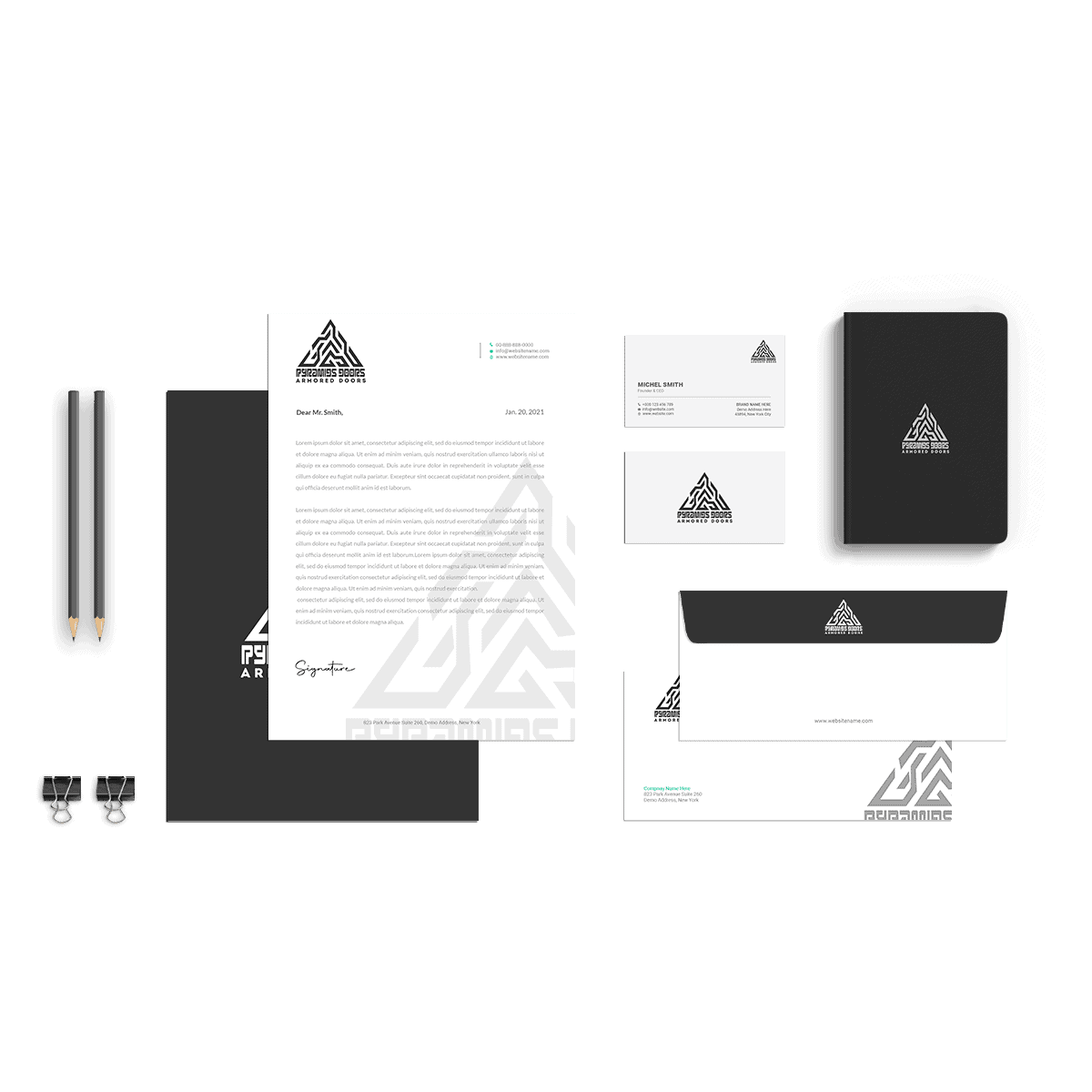 تم التواصل معنا من قبل شركة بيراميدز للأبواب المصفحة لعمل تصميم هوية كامل للشركة
